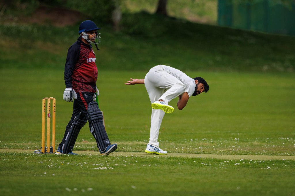 Skipper Pete Caddick lost the toss and County were sent in to bat. Following a first cap presentation from Burnsy to James Boyle , Chris Richardson (2) and the captain started proceedings. Leith bowled well changing bowlers frequently as Adam Hayward (0) and Zeeshan Gohar (9) came and went. Boyle (10) enjoyed a few runs on debut and then Niall Burns (36) joined the skipper in a partnership of 104. Burns smashed six fours, mostly to the cover boundary and even joined in with singles and the occasional two. Aarad Ajmal (0*) joined Caddick (74*) as County finished 40 overs on 169 feeling it was a competitive total.